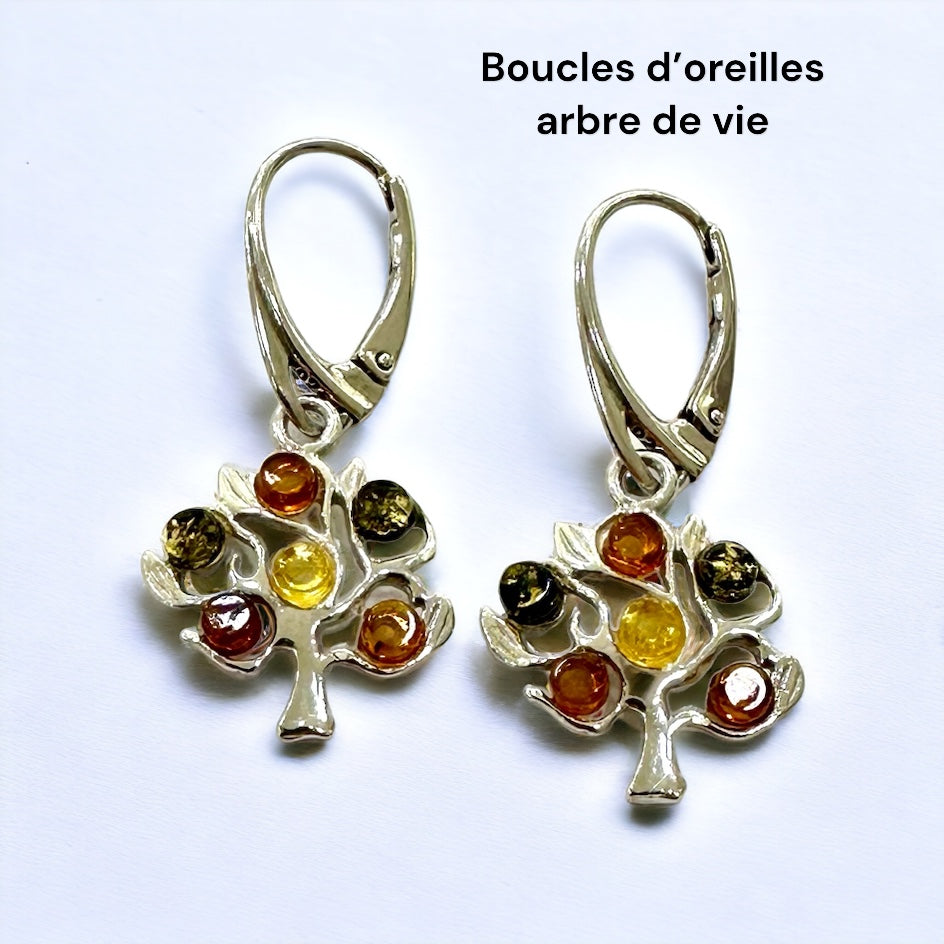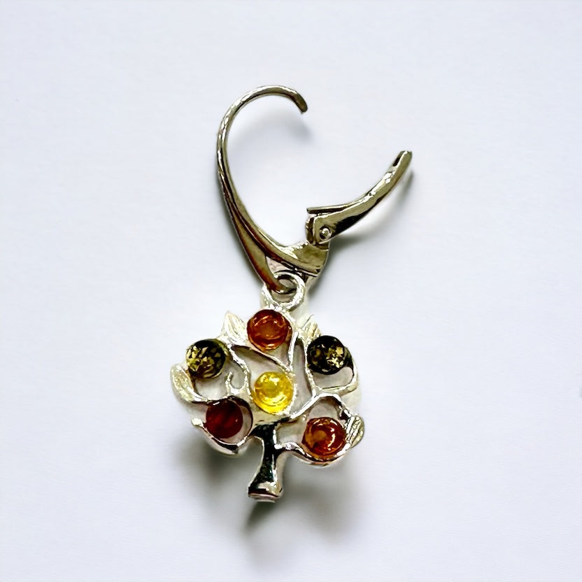 Boucles d'oreilles argent 925 rhodié et Ambre de la Baltique multicolore