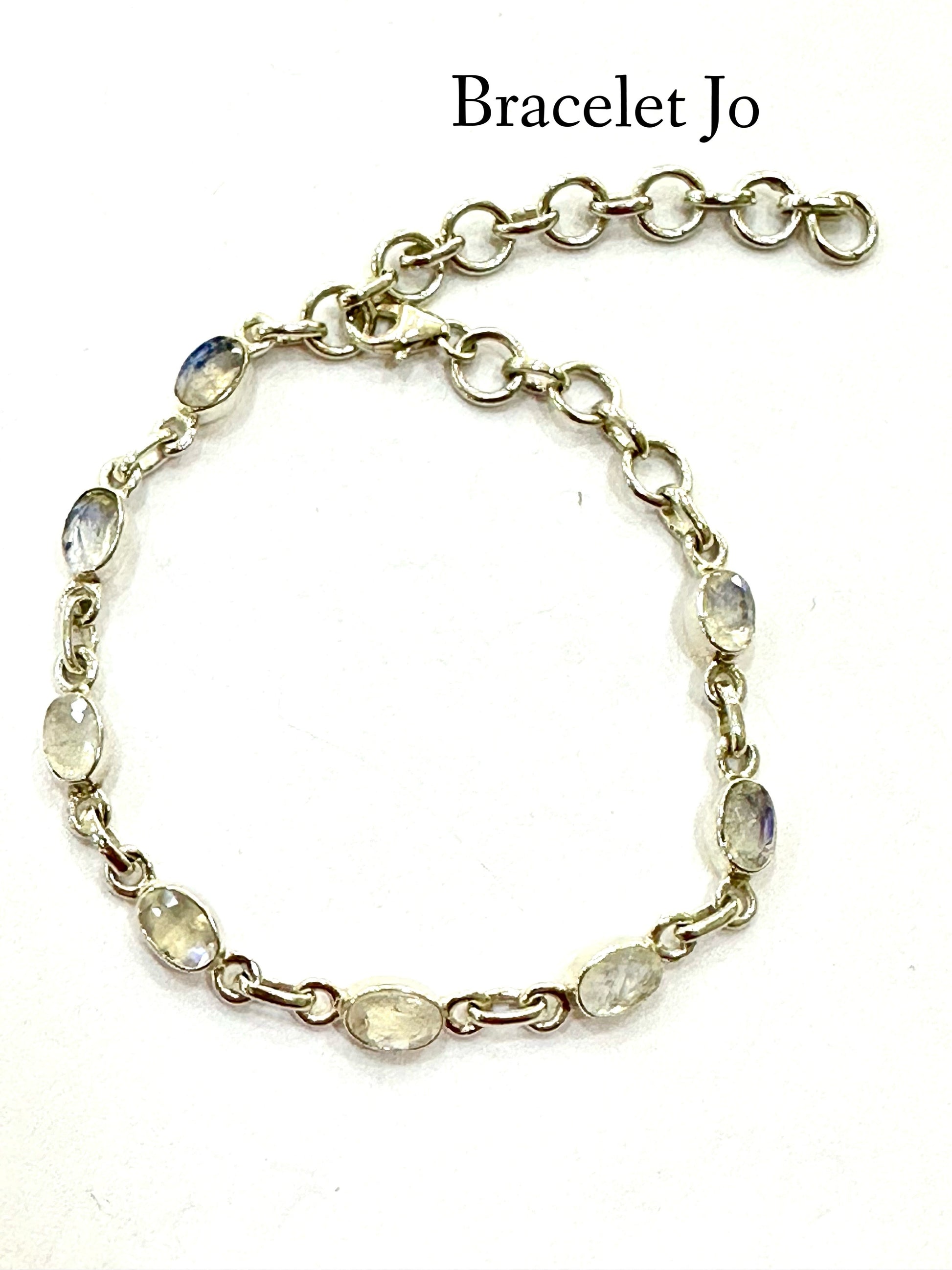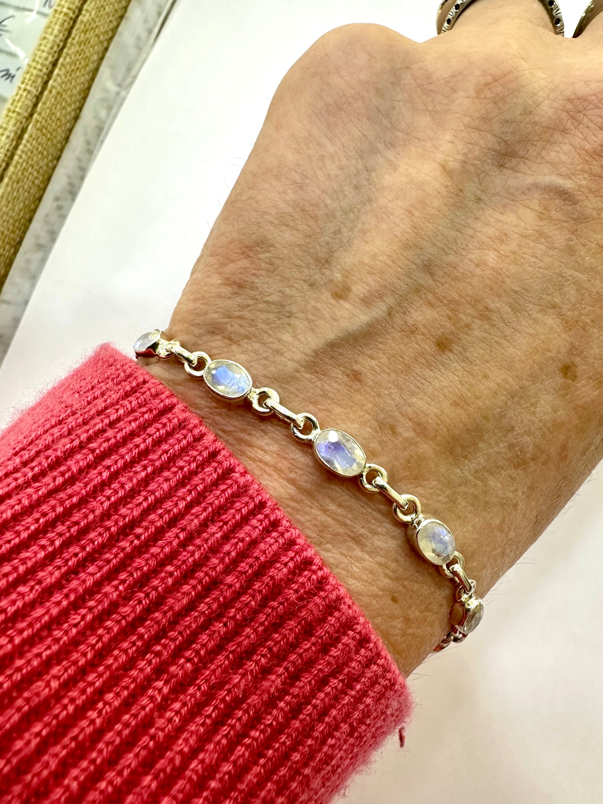 Bracelet argent 925 rhodié orné de 8 Pierres de Lune facettées