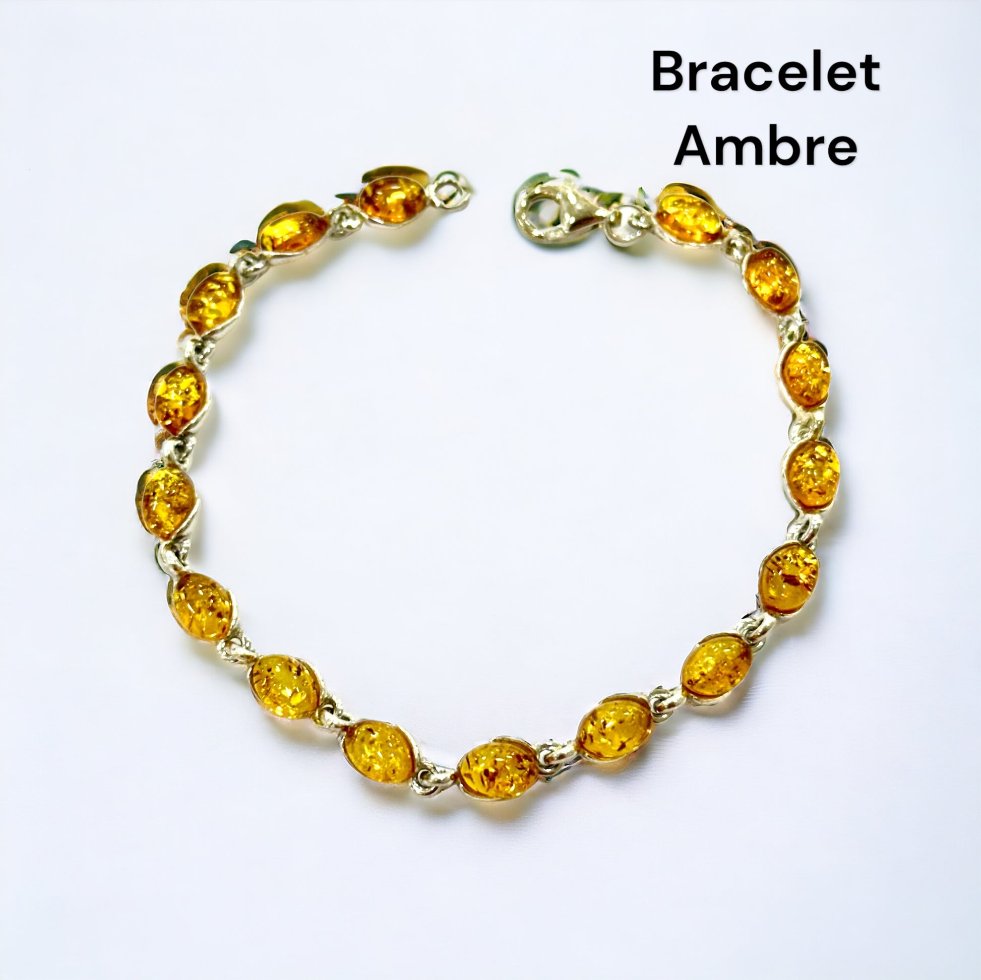 Bracelet argent 925 rhodié orné de 16 Ambres de la Baltique.