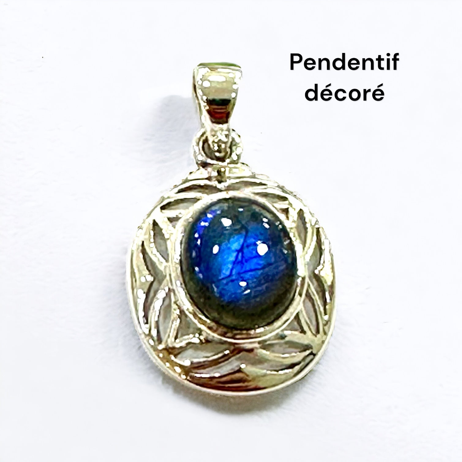 Argent travaillé et petit cabochon Labradorite