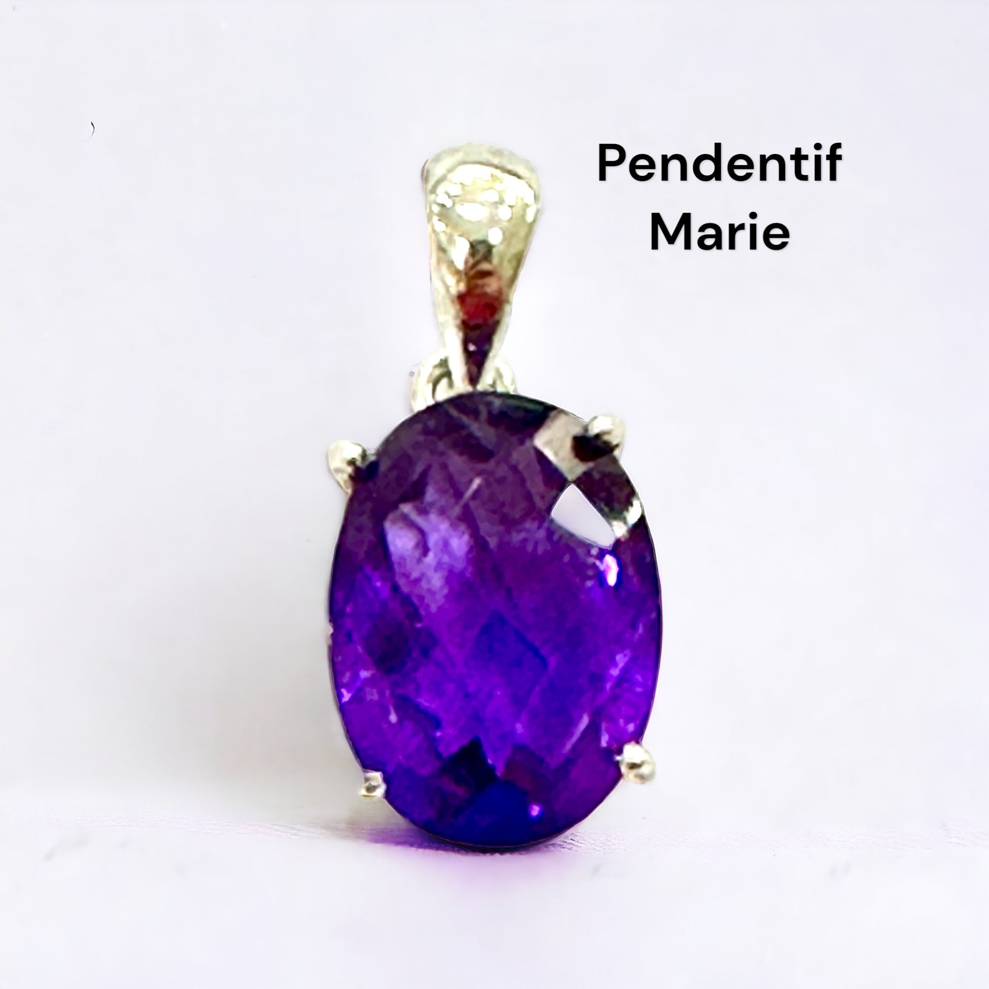 Pendentif argent 925 orné d'un cabochon en Améthyste faceté